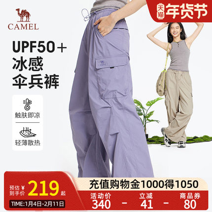 骆驼山海伞兵裤春夏25新款凉感防晒情侣户外穿搭直筒阔腿工装裤女
