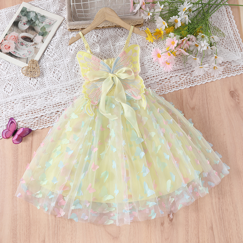 女童七彩立体蝴蝶公主裙夏季新款吊带裙宝宝生日儿童蓬蓬纱连衣裙