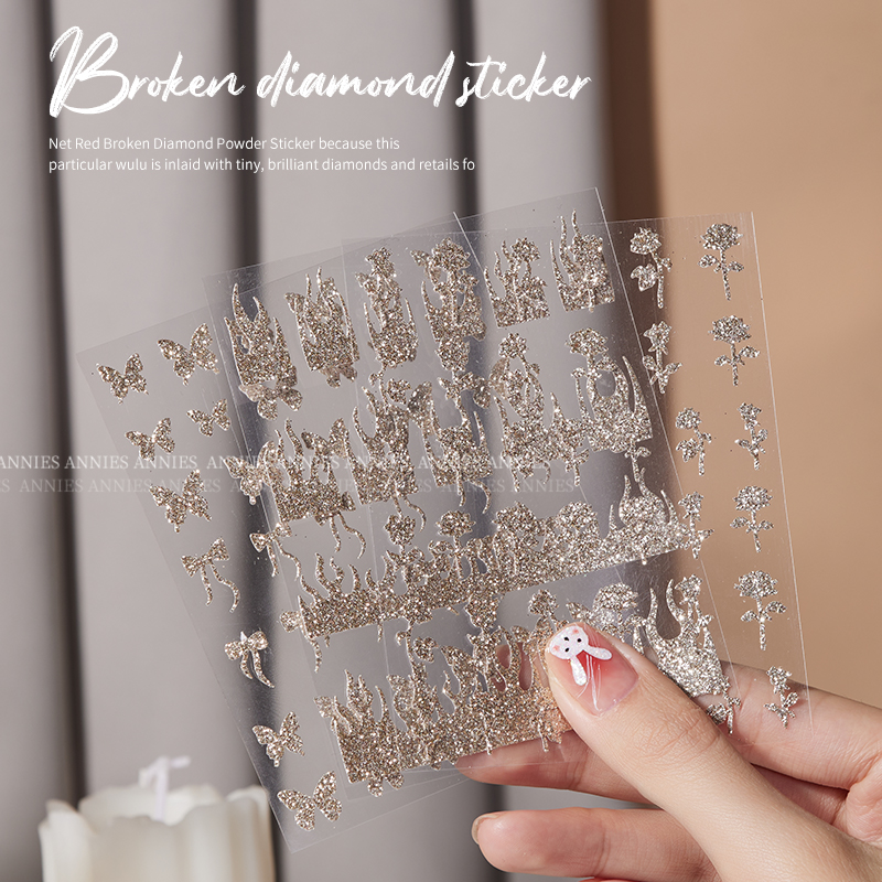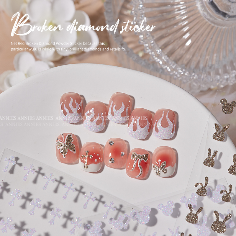 网红爆款超闪碎钻银粉美甲贴纸爆闪星芒小熊蝴蝶指甲胶背贴花饰品