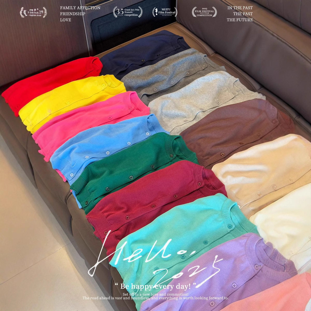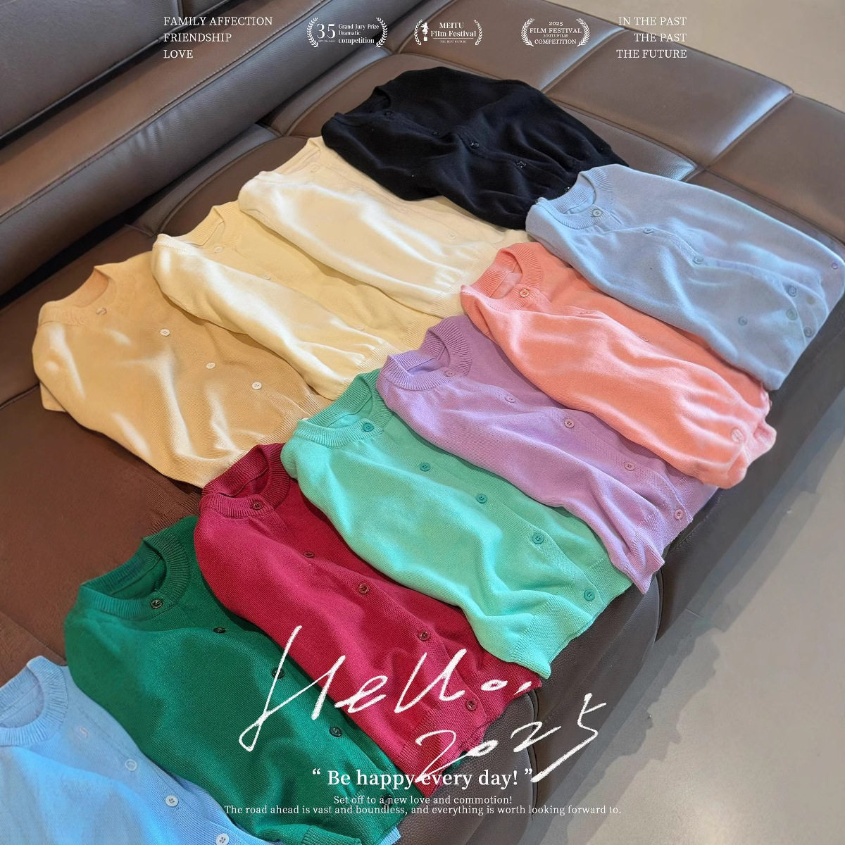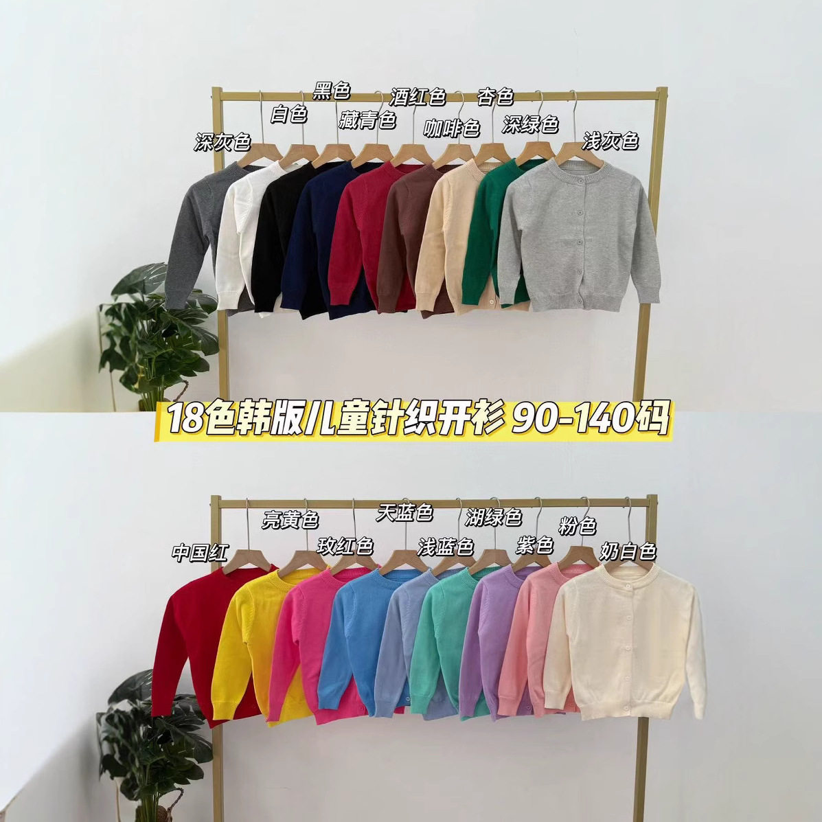 春秋装新款儿童韩系纯棉针织空调开衫男女童薄款纯色简约毛衣外套