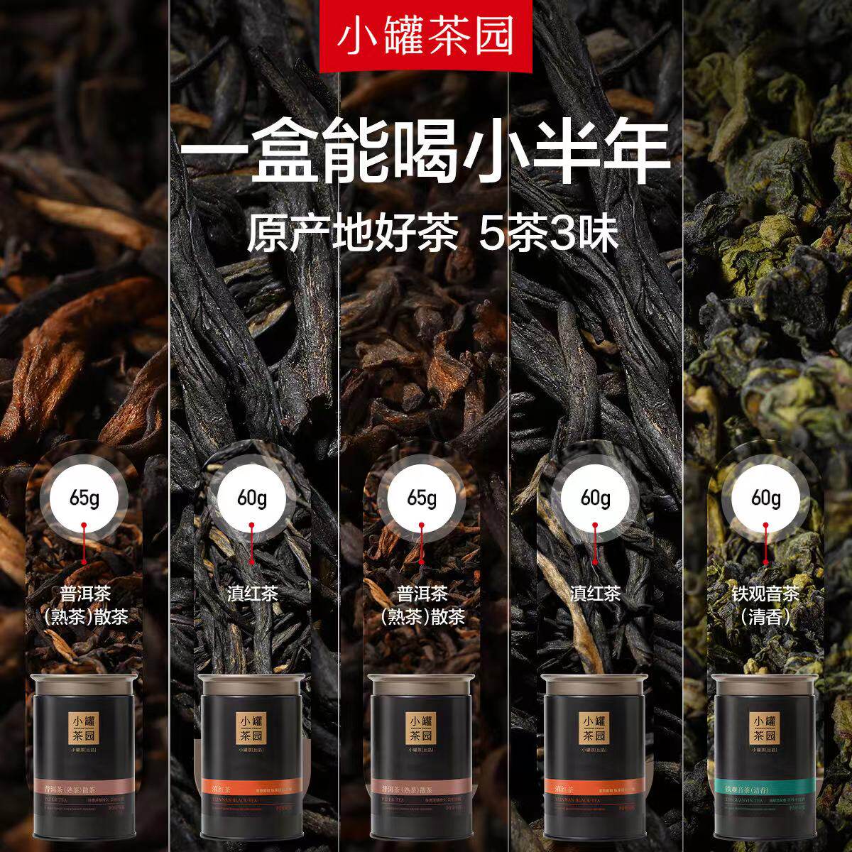 小罐茶园流金乌龙茶大红袍铁观音茶叶滇红茶茉莉花茶2罐装自己喝