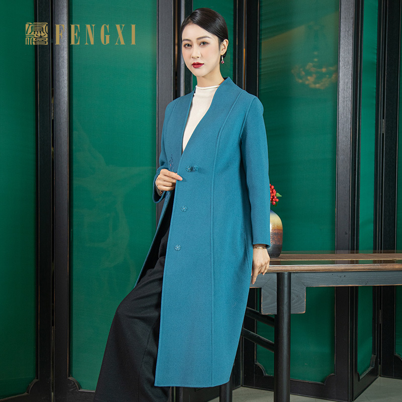 凤禧2025年新款春秋女士中长款绵羊毛大衣过膝修身日常气质外套女