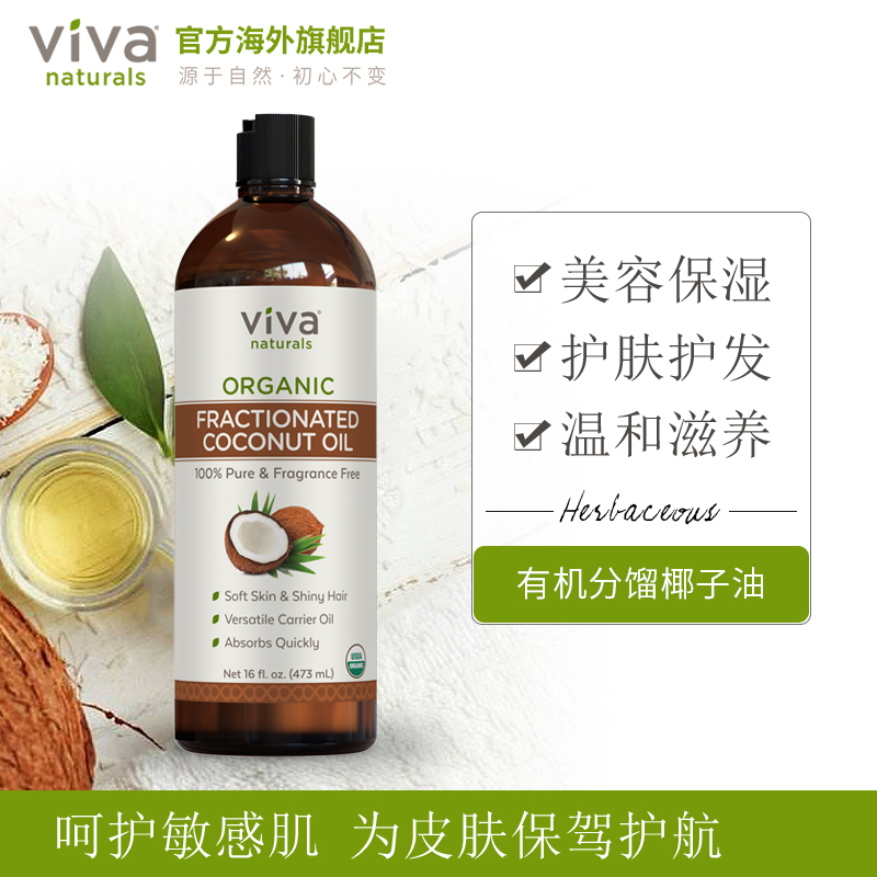 【26.8月临期】viva美国进口有机分馏椰子油护肤护发按摩油473ml