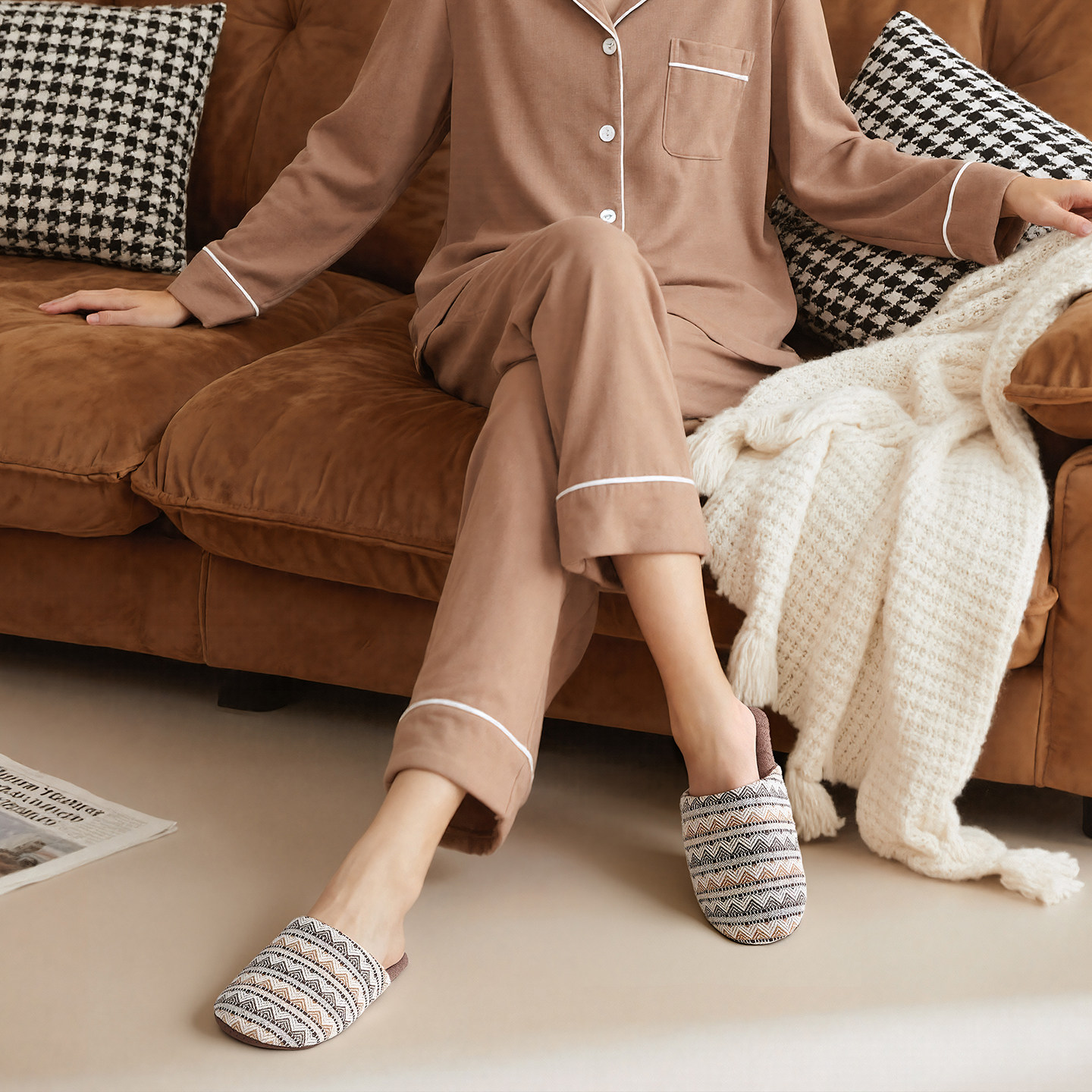 复古包头木地板静音棉拖鞋女秋冬季居家室内防臭男软底防滑不沾灰