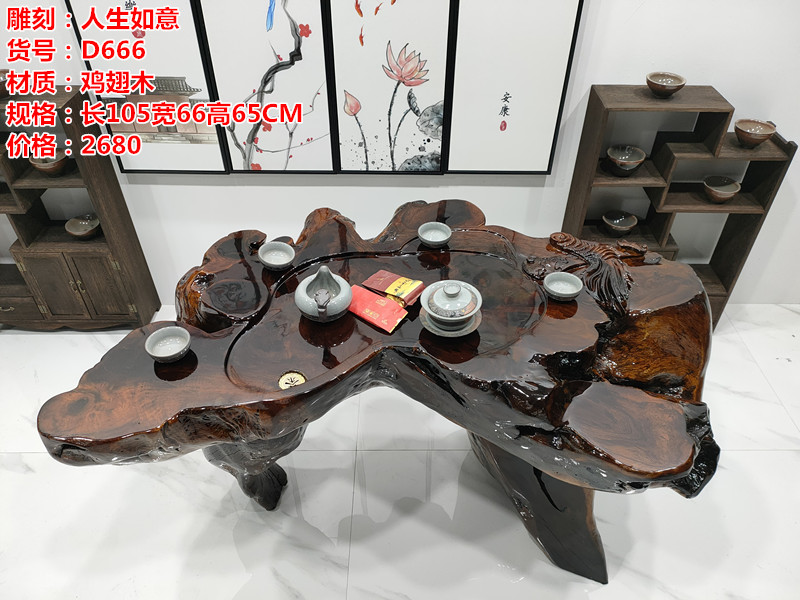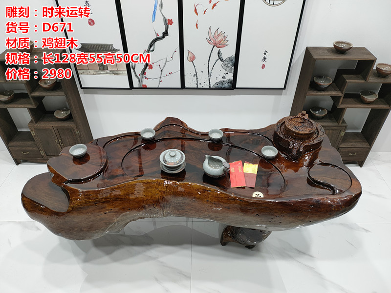 根雕茶台家用阳台小户型实木茶海鸡翅木原木茶桌茶几整体香樟树桩