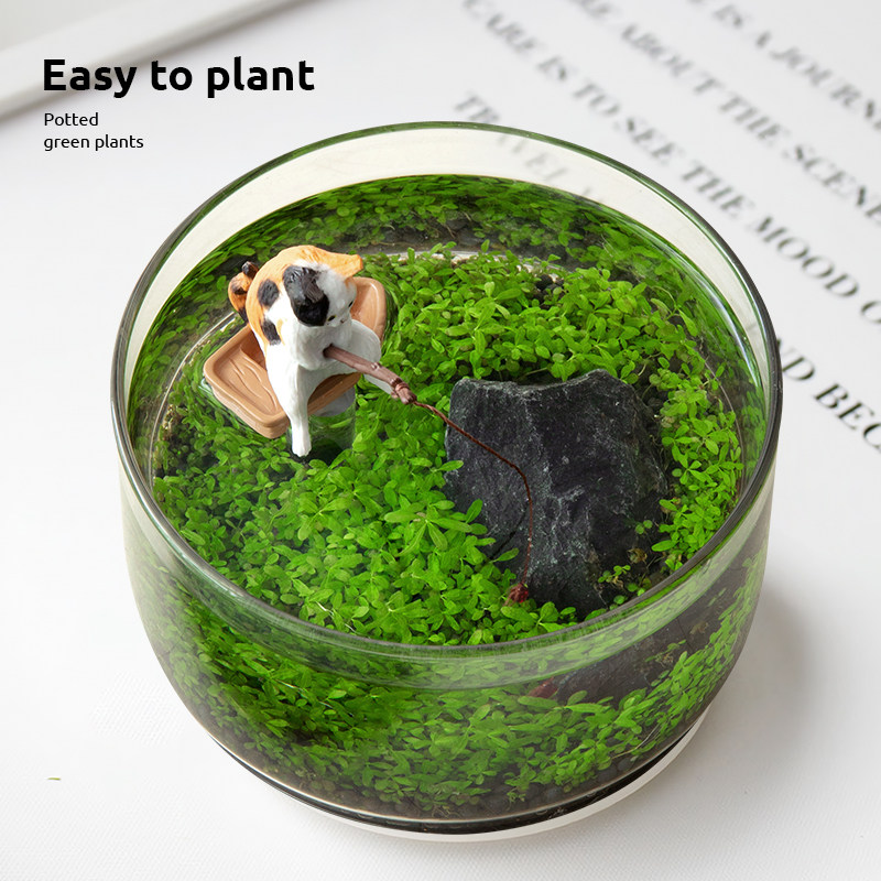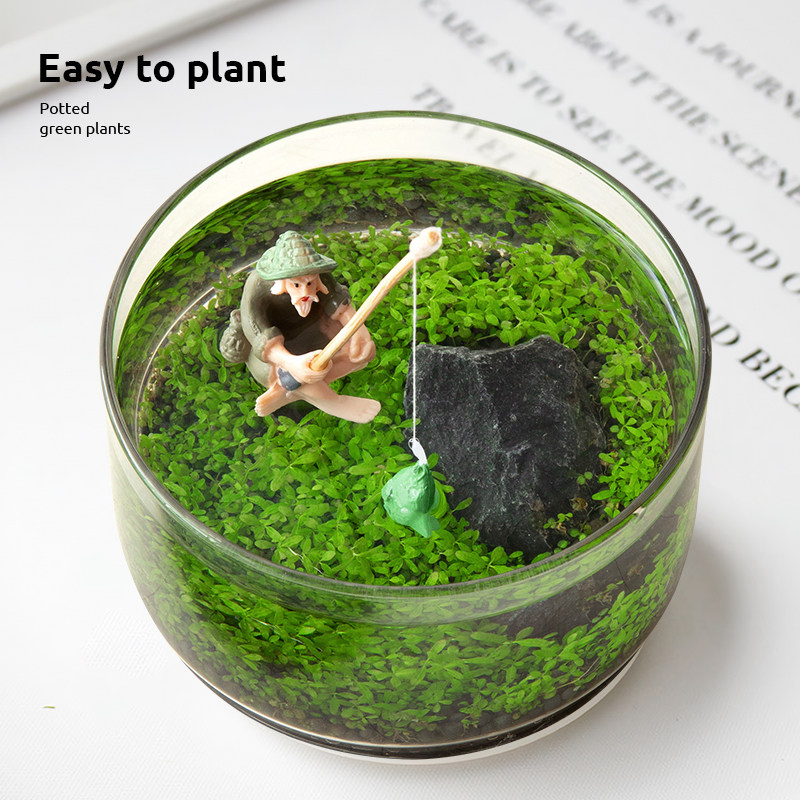 钓鱼微景观客厅桌面小鱼缸办公室造景玻璃缸水草种子创意diy盆栽