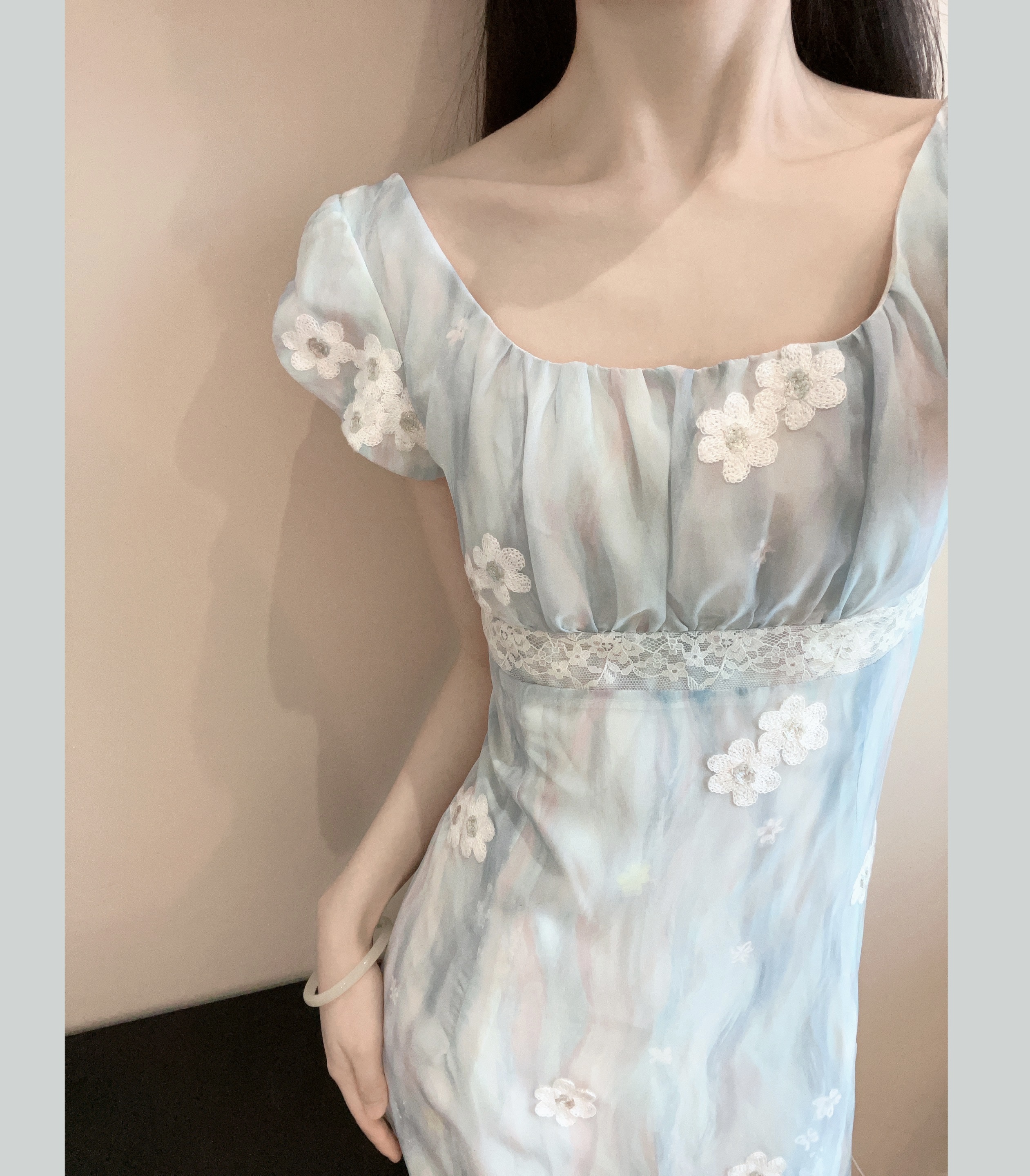 原创自制「小苍兰」夏季新款小花刺绣高级感气质收腰A字连衣裙