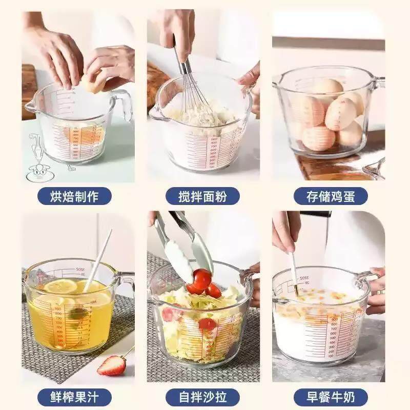 玻璃量杯牛奶豆浆大杯子微波炉热奶专用烘焙杯耐高温带刻度打蛋碗