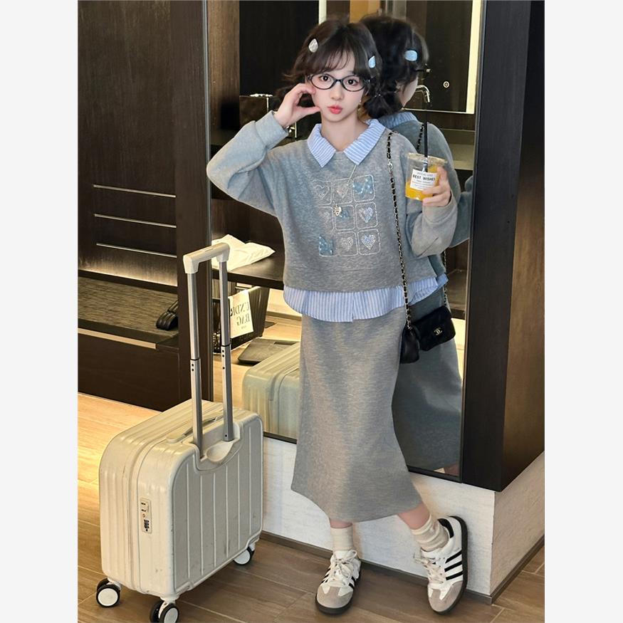 女童秋季洋气假两件卫衣连衣裙套装2025新款时尚女大童秋装裙子潮