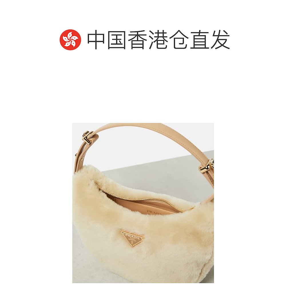 1h可退 香港直邮Prada 普拉达 女士 Arqué 毛羊皮肩包 white白色