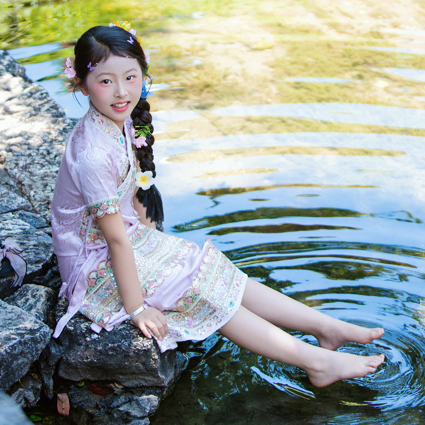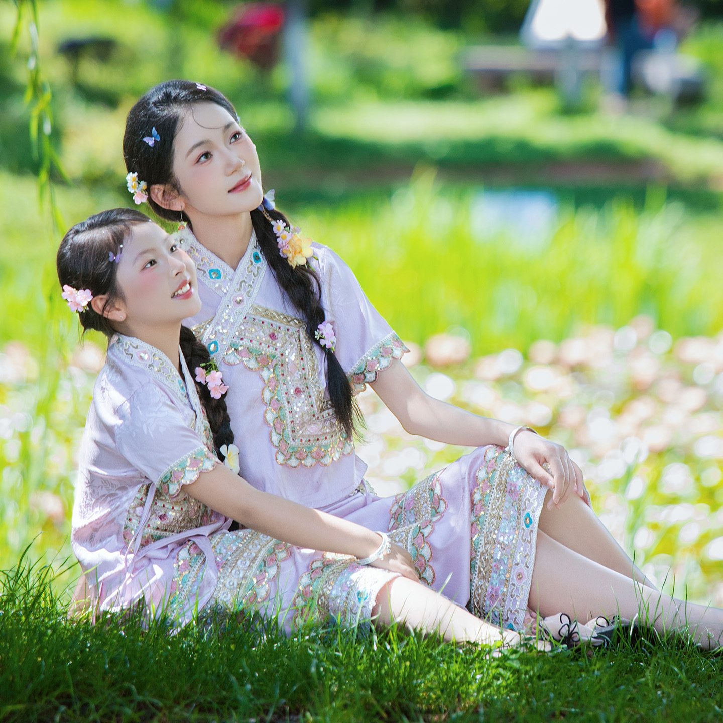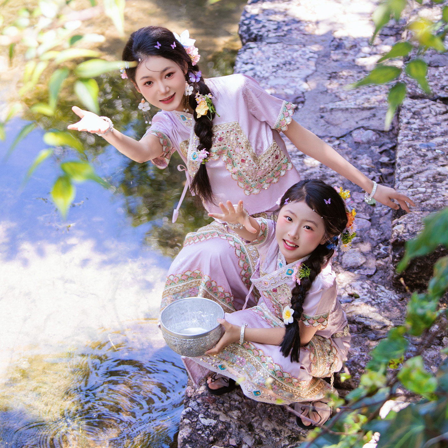 傣族少数民族舞蹈服异域风云南写真旅拍母女装泼水节夏季服饰服装