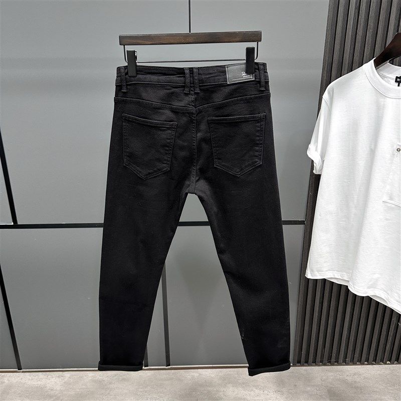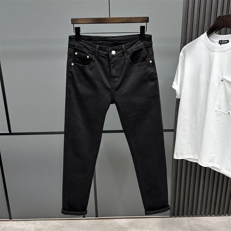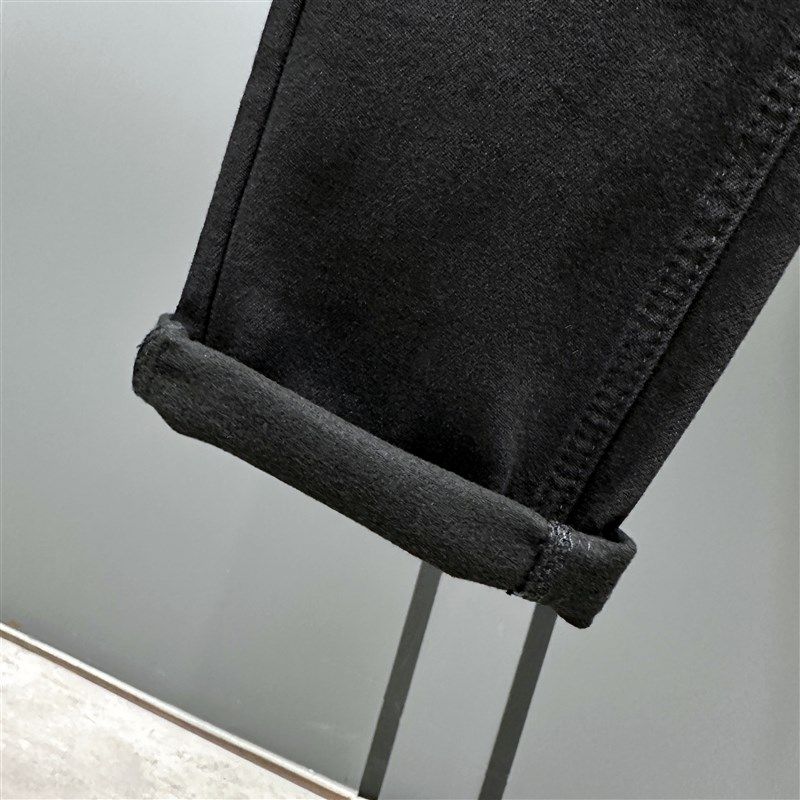 经典黑色抓毛加厚水洗弹力修身小脚九分牛仔裤男秋冬潮流休闲长裤