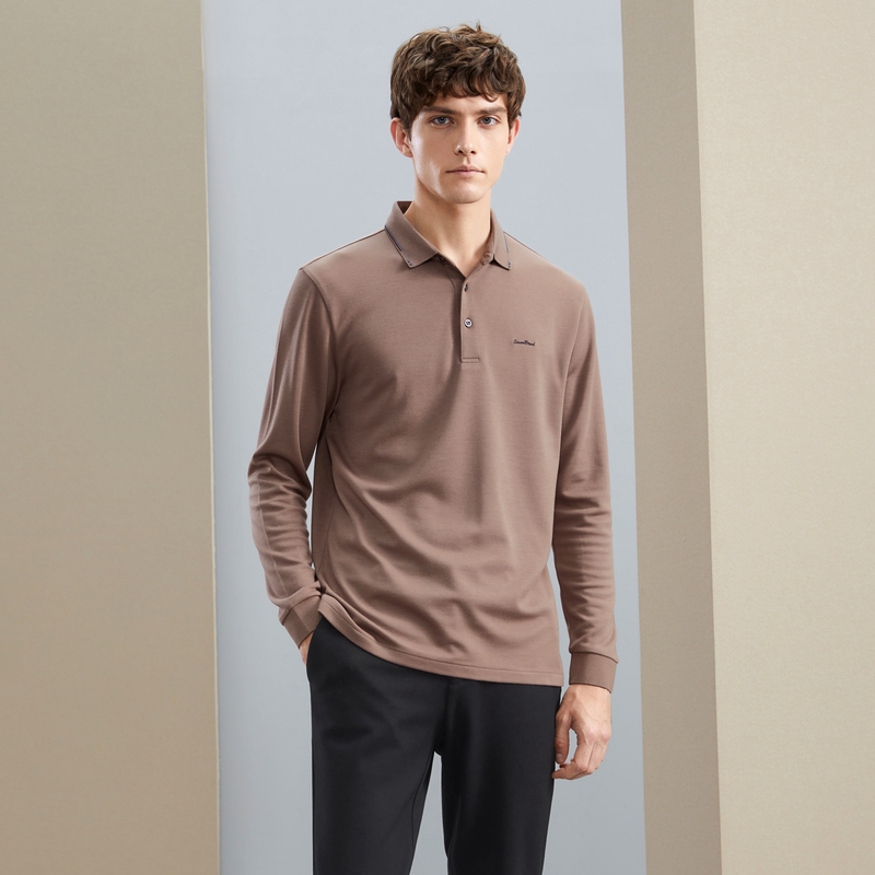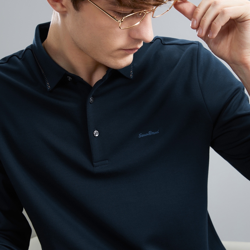 【直降】柒牌男士polo衫长袖秋冬新款字母含羊绒绣花磨毛翻领上衣
