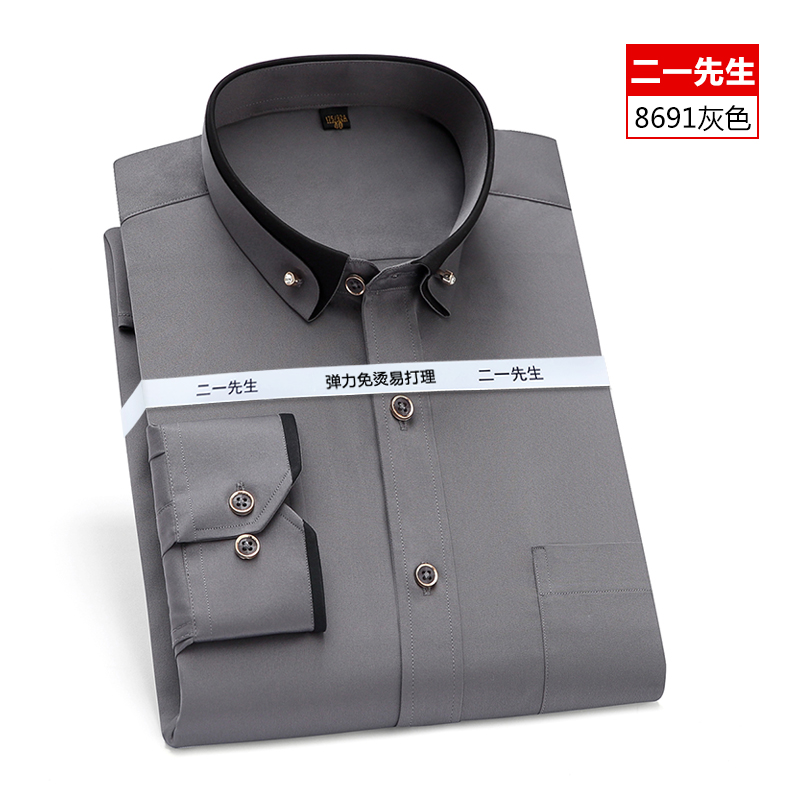 秋季弹力长袖衬衫男纯黑色商务休闲免烫衬衣男青年扣领抗皱打底衫