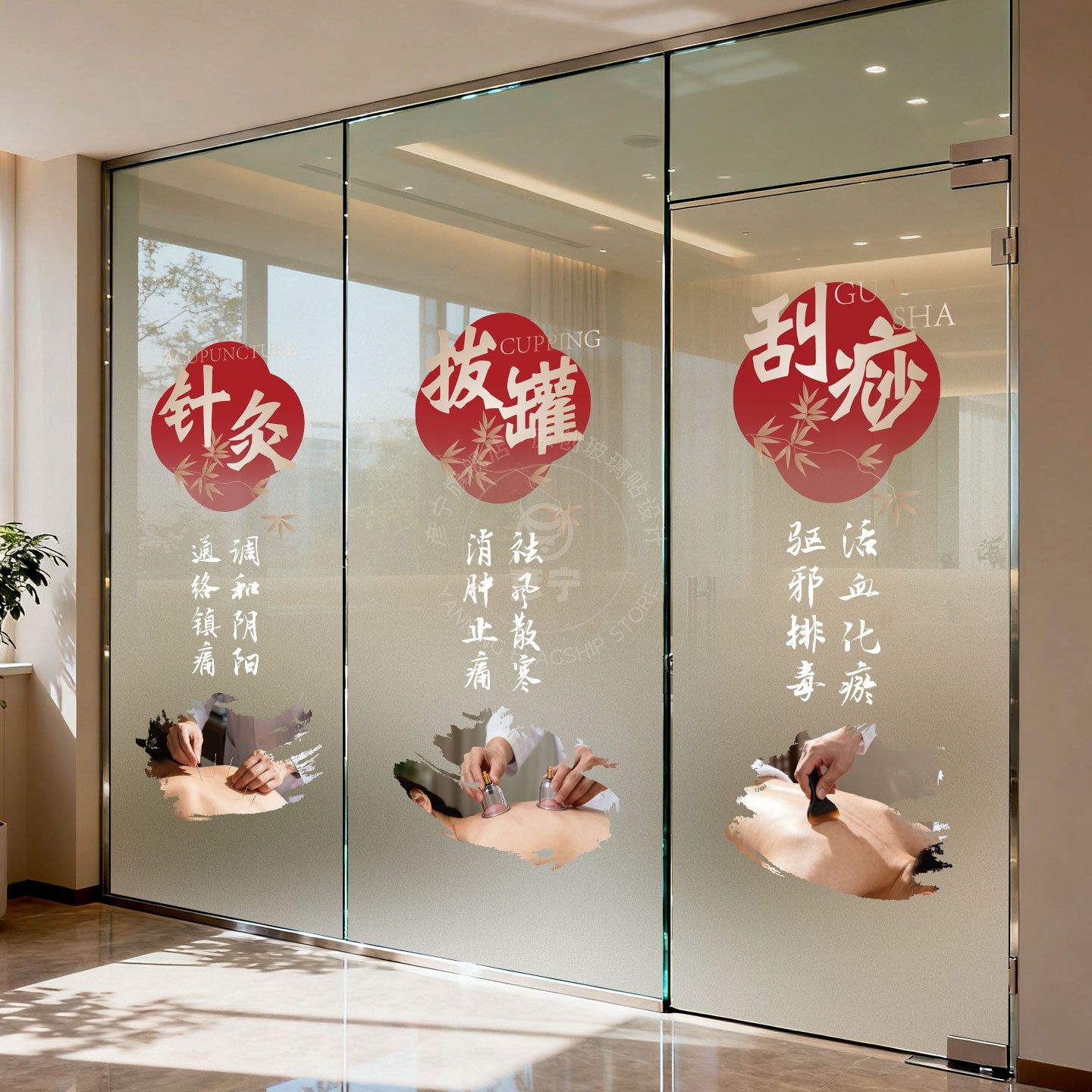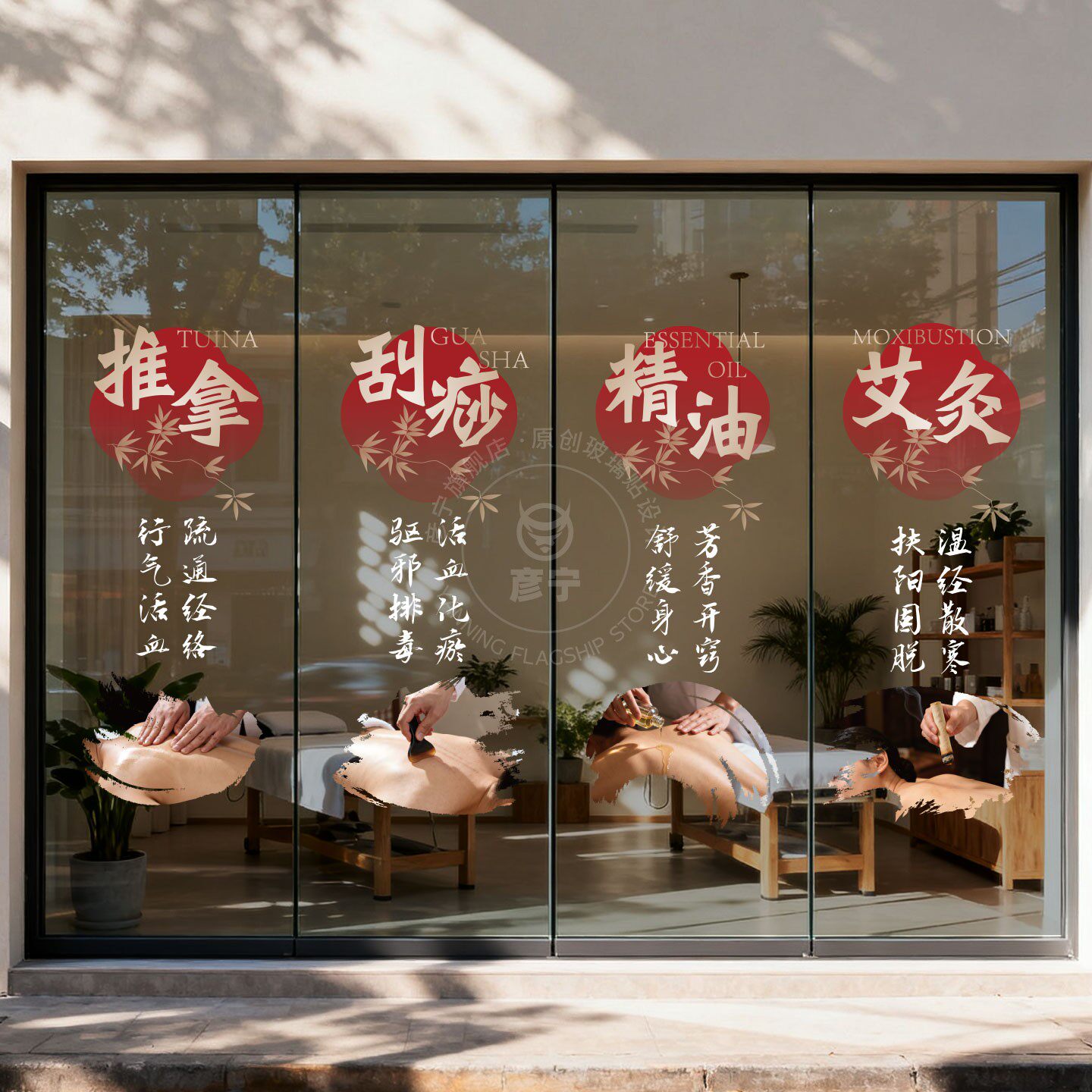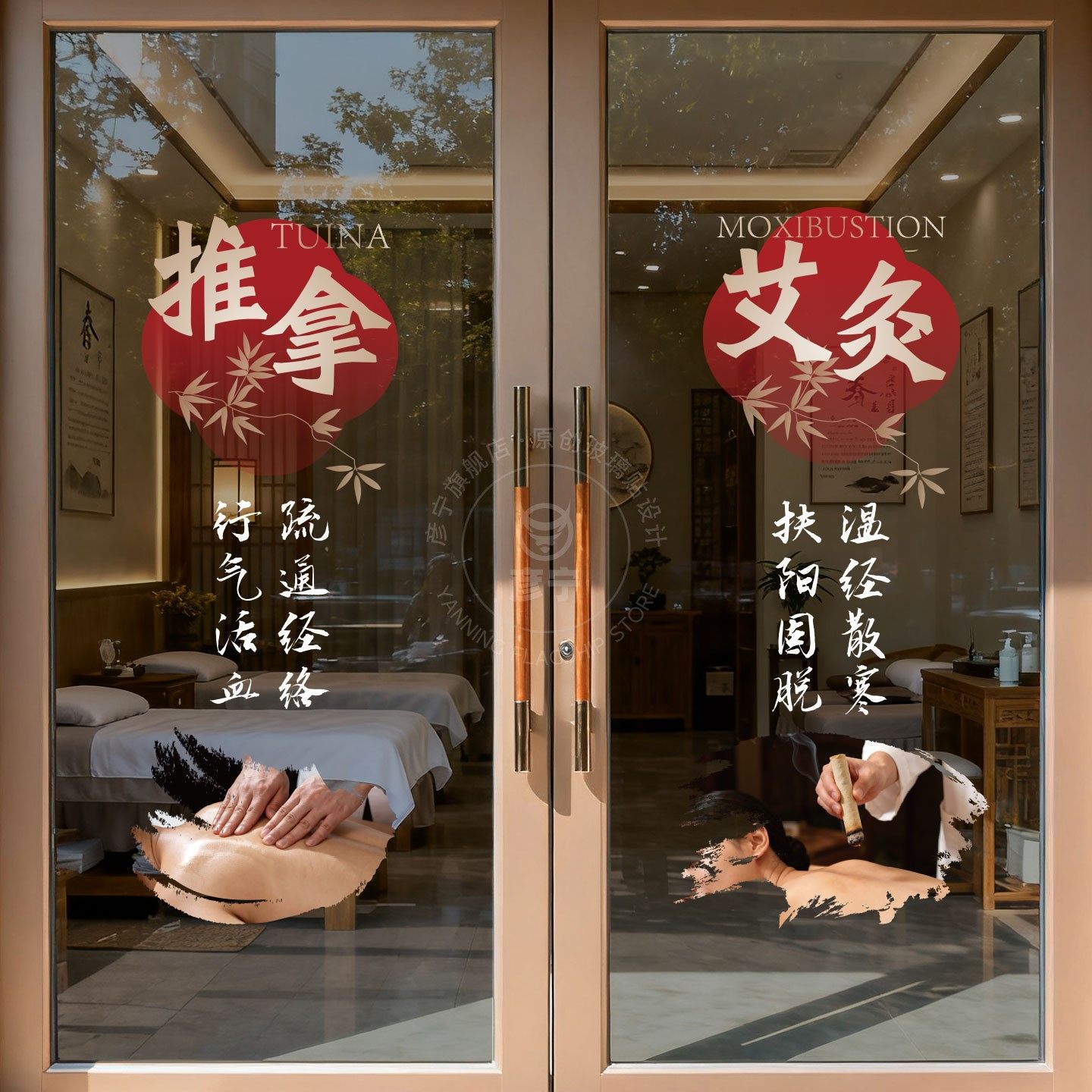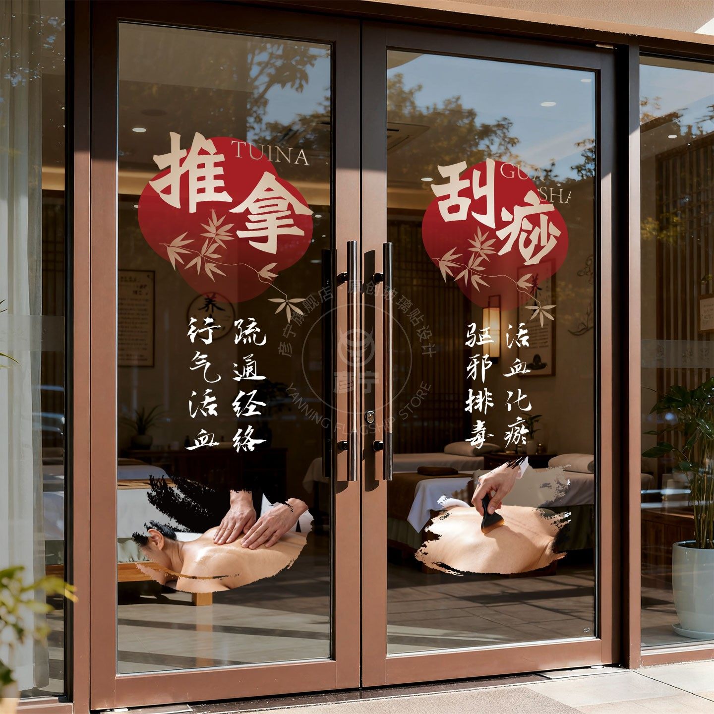 推拿足疗按摩中医养生馆艾灸橱窗装饰玻璃门贴纸刮痧拔罐针灸宣I