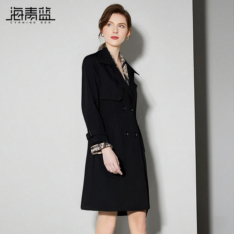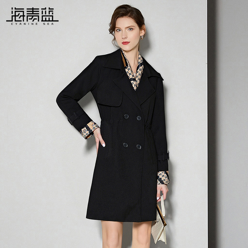 海青蓝 风衣女款2025年新款长袖中长款女装高级设计感秋冬外套