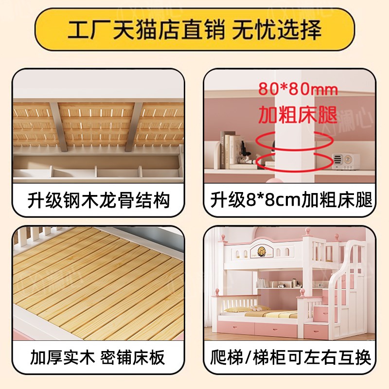 全实木上下铺经济型床儿童床女孩多功能子母床高低床上下床双层床