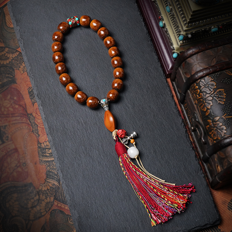十八籽菩提子手持手串紫金鼠藏式文玩配饰生肖本命盘玩佛珠流苏
