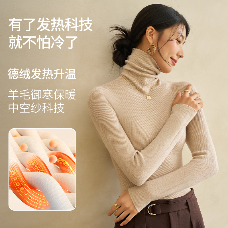 猫人高领针织打底衫女秋冬内搭2025新款羊毛衣堆堆领修身洋气上衣