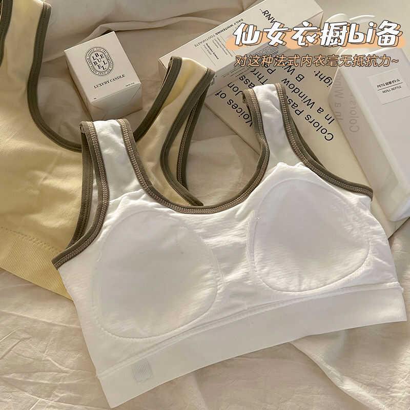 内衣女无钢圈防下垂一体式固定运动美背少女背心学生文胸2024秋冬
