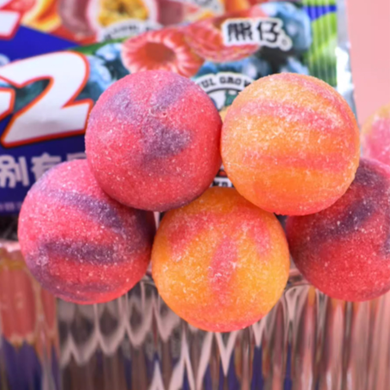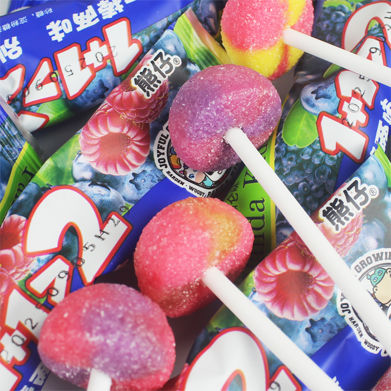 熊仔1棒2味酸砂棒棒糖混合果汁糖彩虹双拼糖果网红创意儿童零食