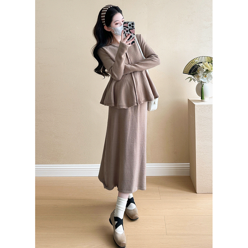孕妇连衣裙套装秋冬一件穿到生