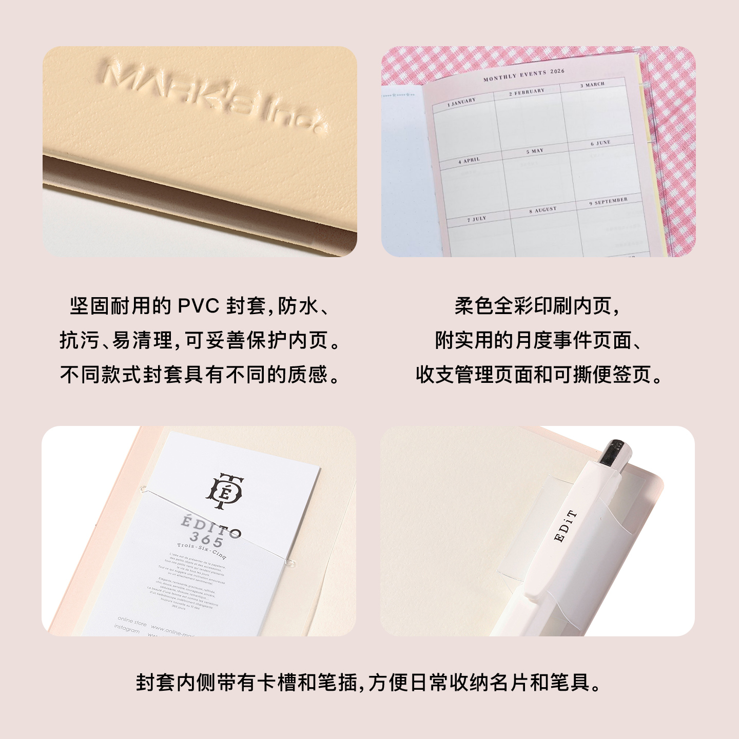 【2026年】日本MARK'S马蛇生肖接力印花封面记账功能月计划彩色内页手帐B6笔记本家用PVC封皮自研手帐纸