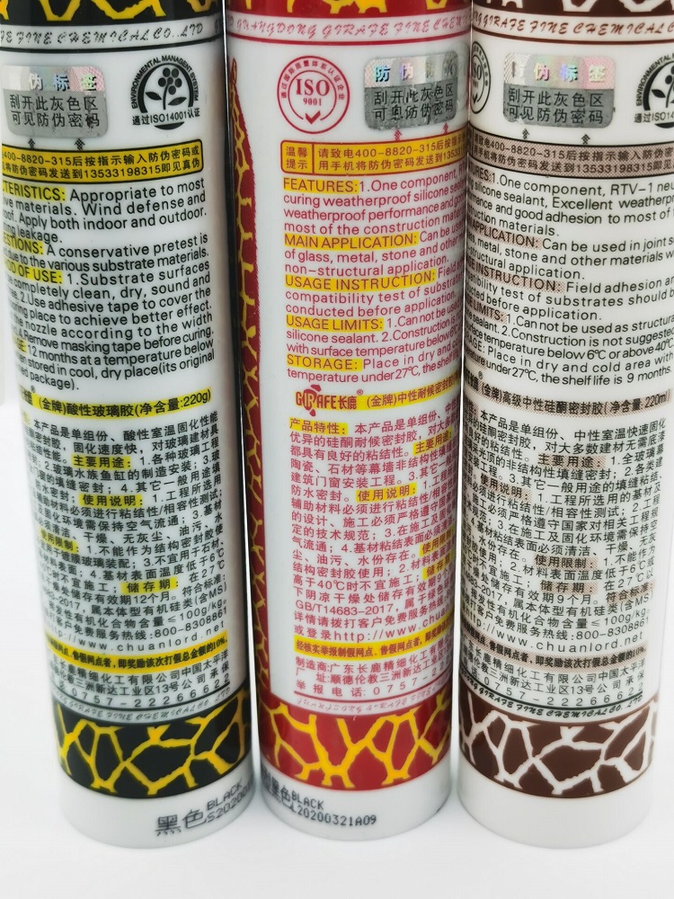 长鹿玻璃胶长颈鹿中性酸性透明黑白灰浴室防水门窗耐候密封胶金牌