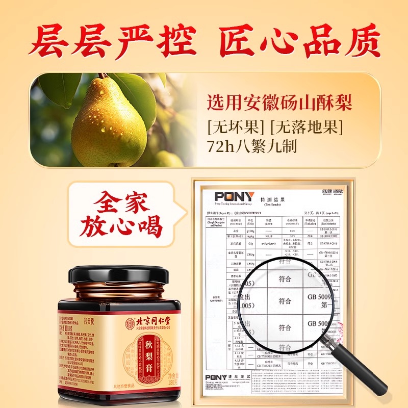 北京同仁堂秋梨膏正宗老牌子蜂蜜无痰肺儿童清润雪梨罗汉果枇杷膏