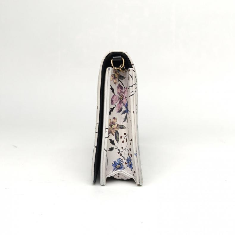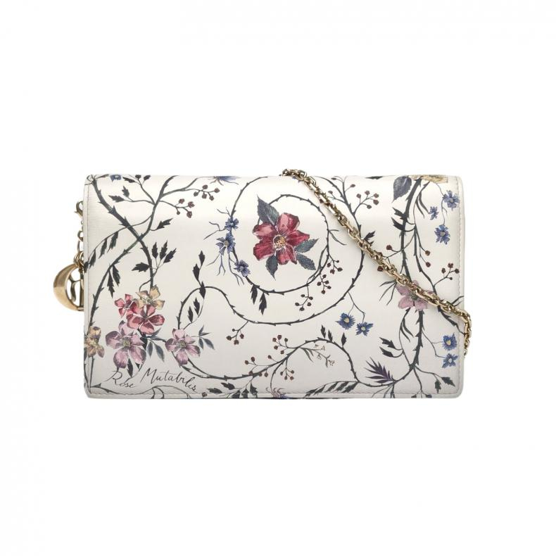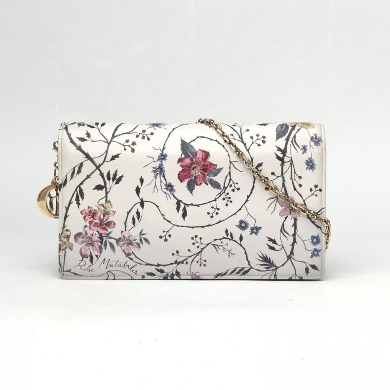 【自营】中古95新Dior/迪奥单肩包链条包-旋转红花白色皮革浅金扣