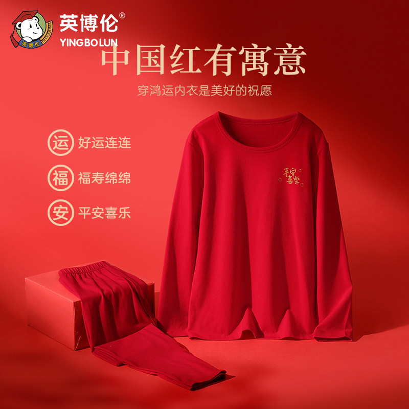 英博伦儿童本命年内衣套装马年红色纯棉青少年大童男女童秋衣秋裤