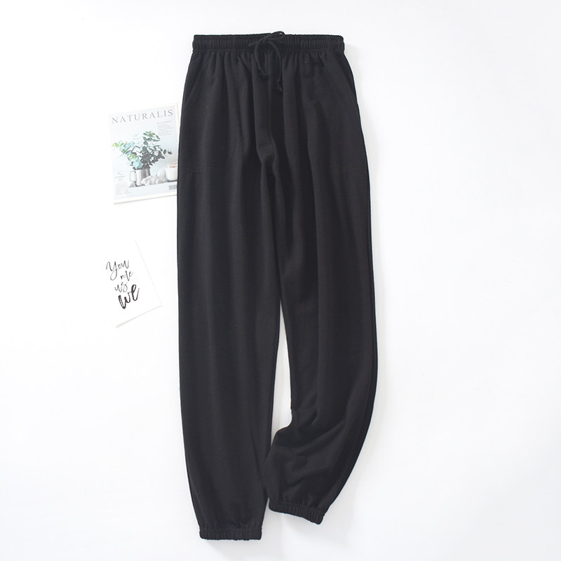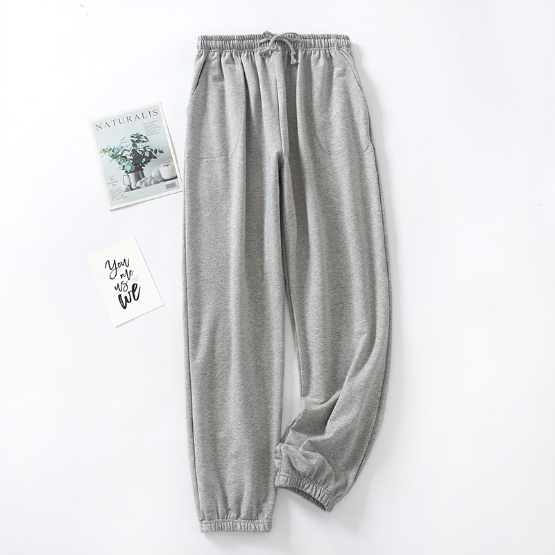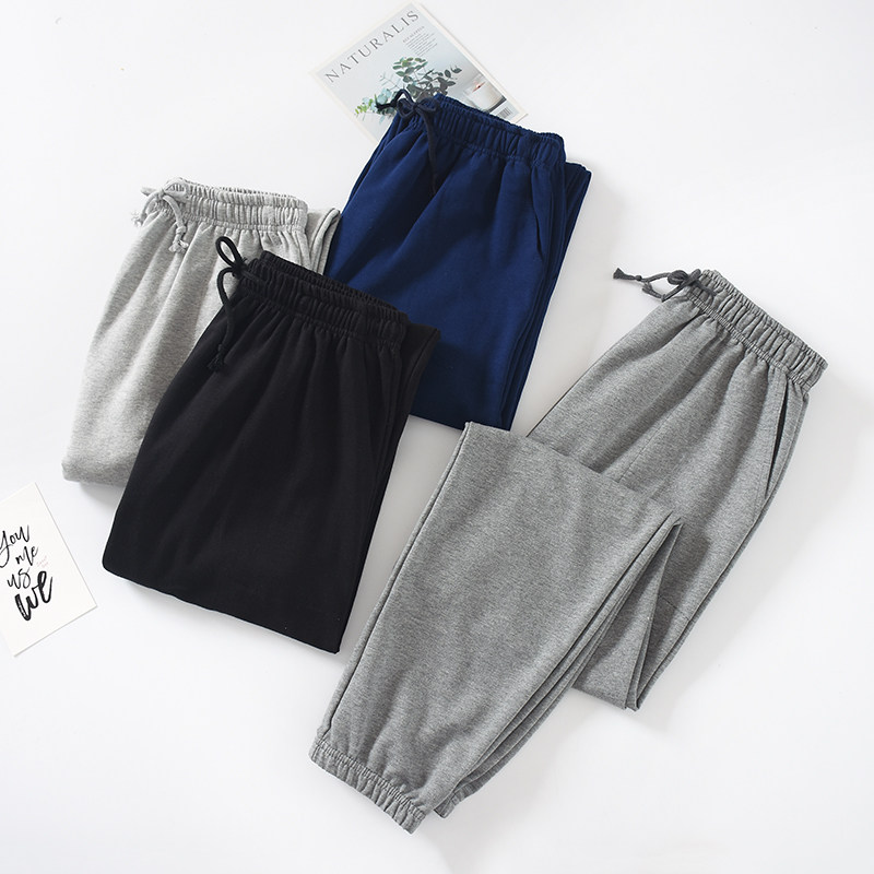 睡裤女男士秋冬季弹力纯棉毛圈厚保暖束脚收口休闲运动家居裤长裤