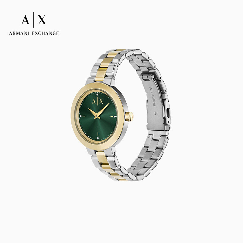ARMANI EXCHANGE/阿玛尼女士轻奢复古钢带圆形石英手表腕表官方