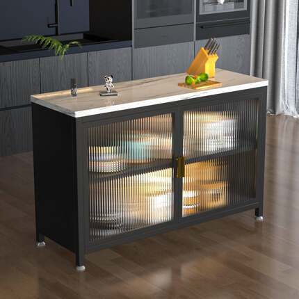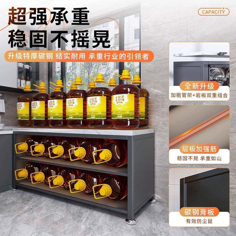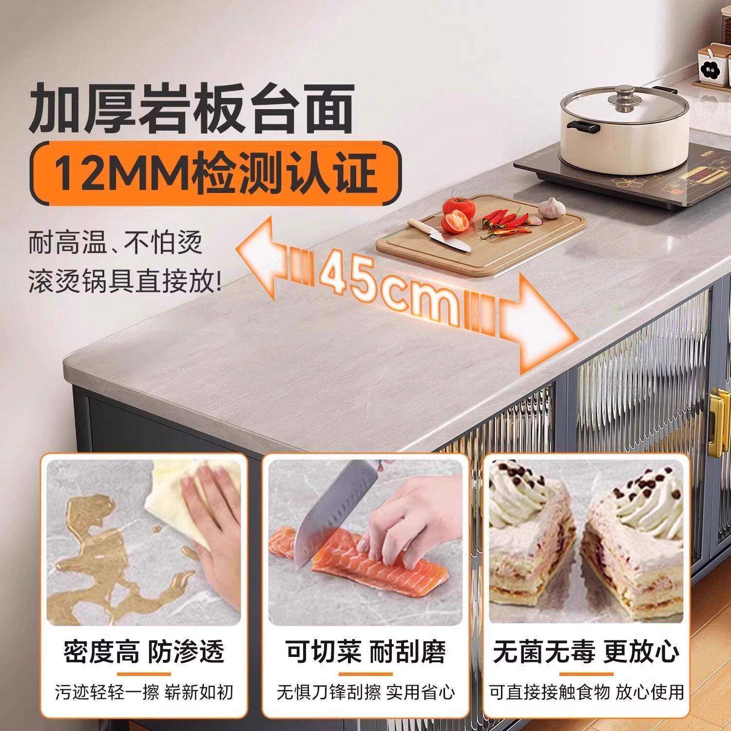 厨房置物架岩板操作台落地多层功能靠墙一体收纳柜餐边储物整体橱