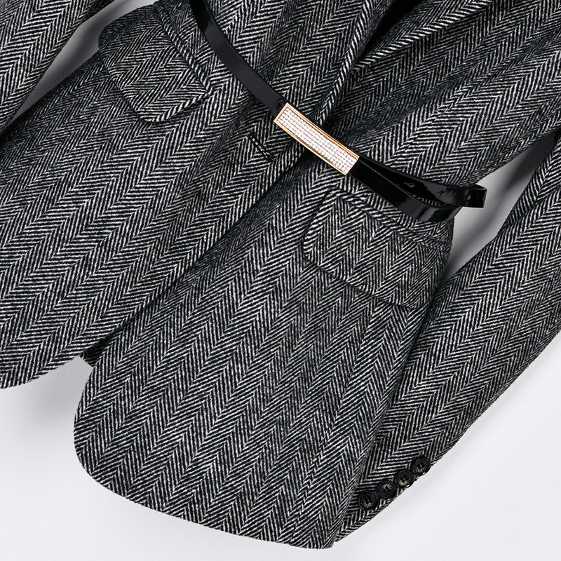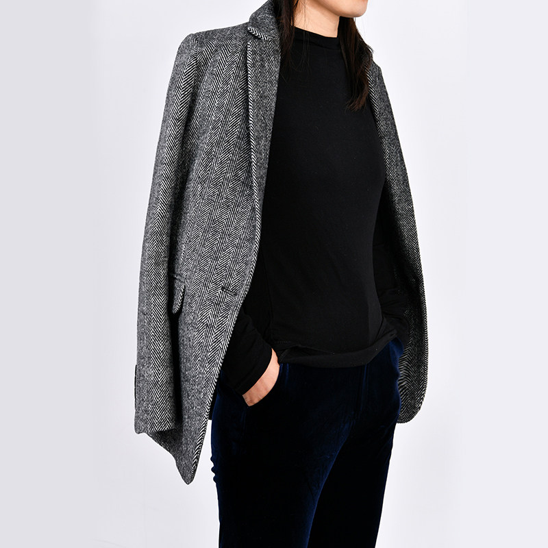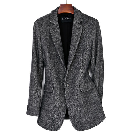 秋冬新款人字纹经典时尚修身羊毛西装毛呢质感西服大码单西女外套
