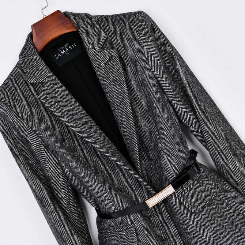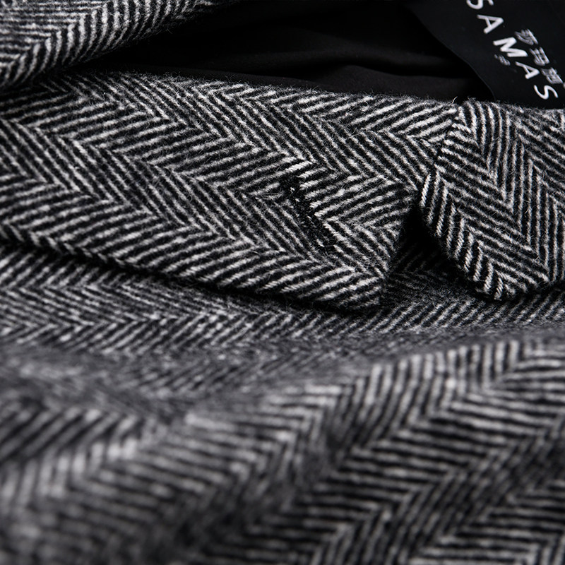 人字纹时尚修身毛呢质感大码西装
