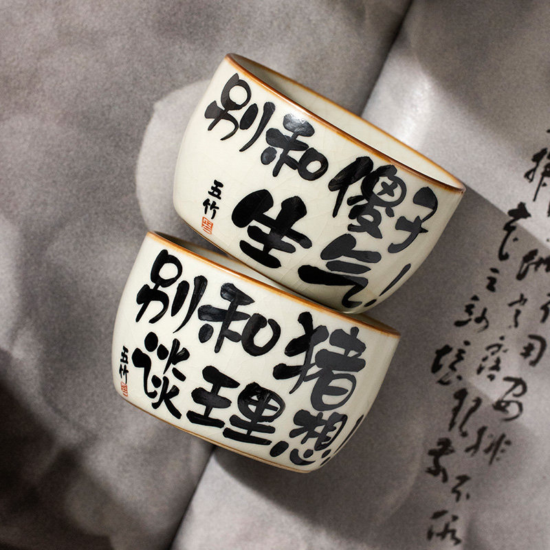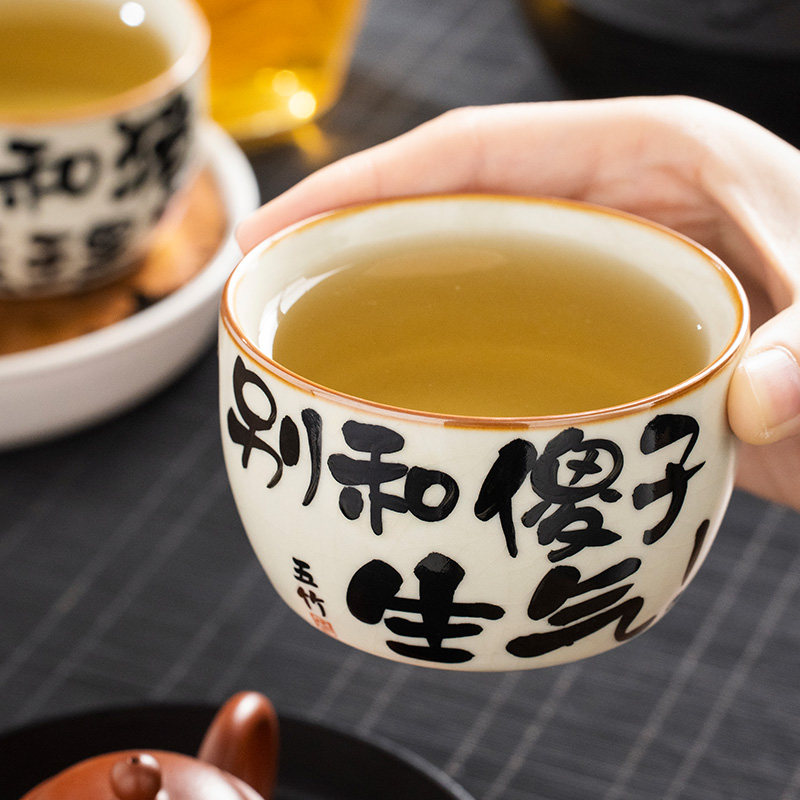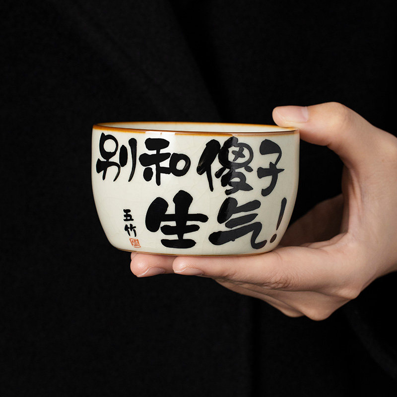 汝窑直边茶杯主人杯个人专用单杯女高端开片陶瓷品茗手写定制茶盏