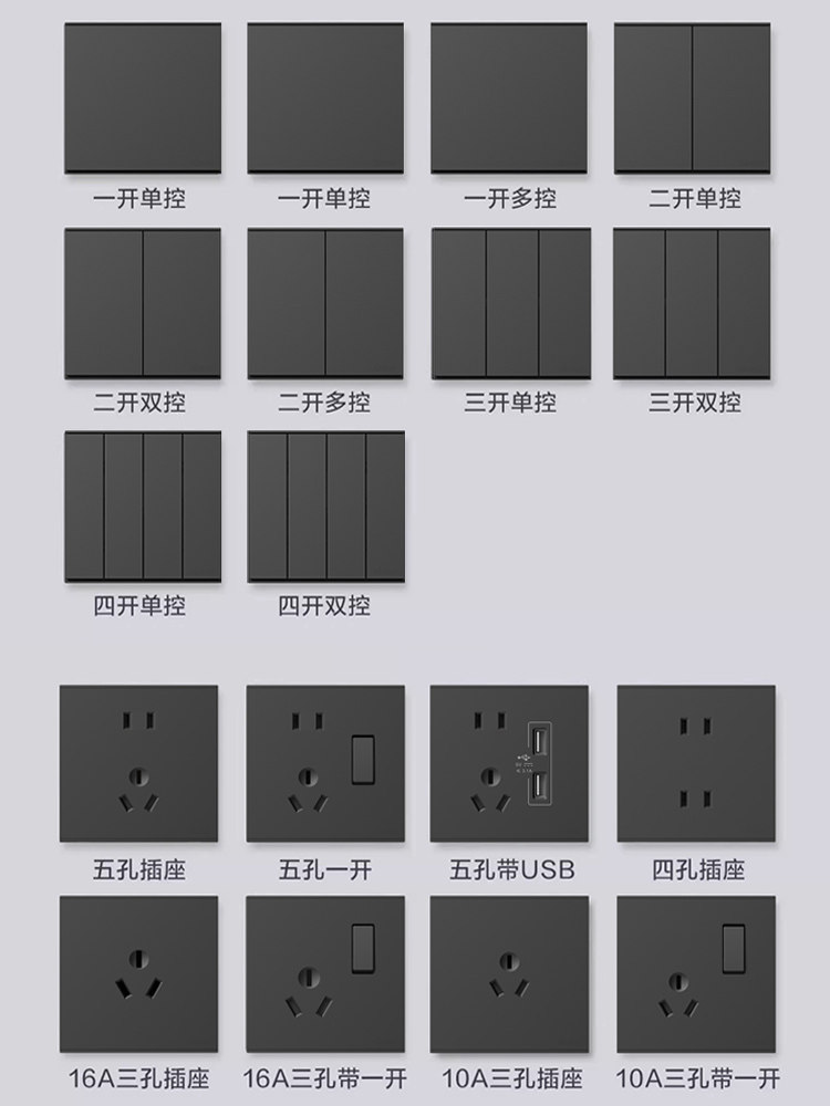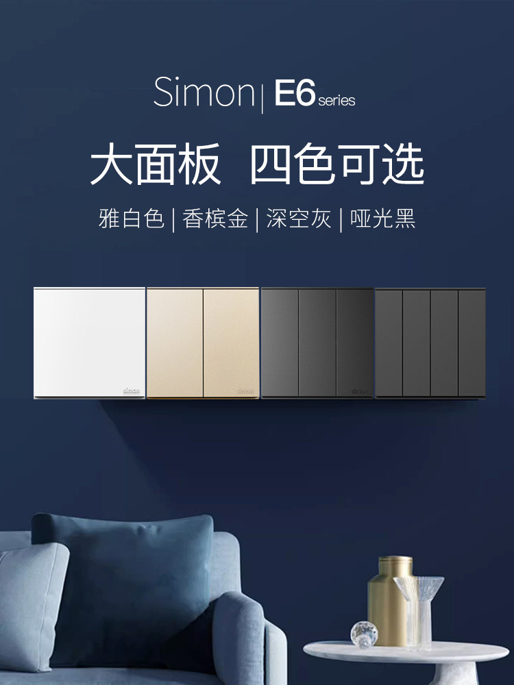 simon西蒙开关插座E6系列哑光黑色五孔usb插座86型暗装家用面板