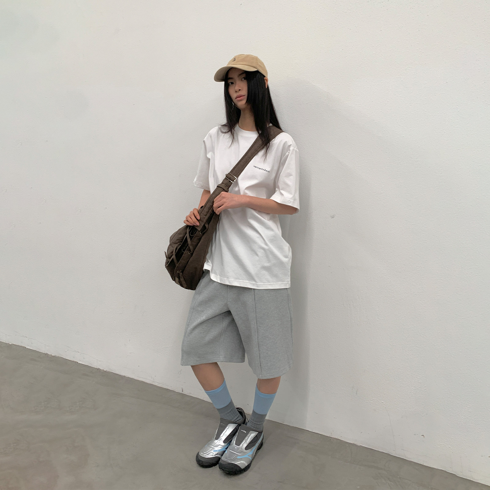 roaringwild a arch 咆哮野兽 徽标刺绣肌理感男裤直筒美式短裤潮