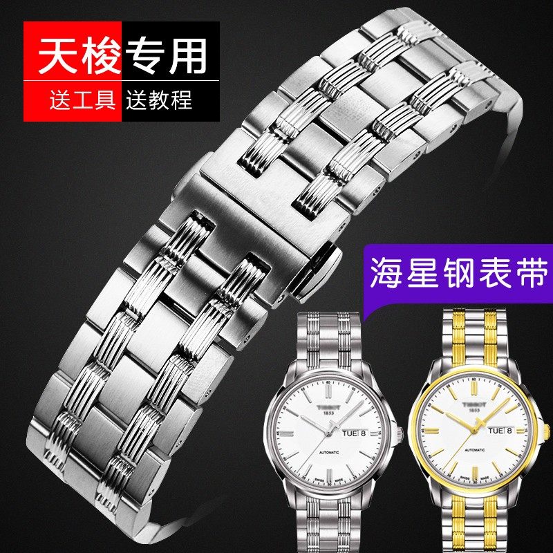 康诺利代用天梭钢表带T065海星恒意男1853不锈钢表带精钢表链原装