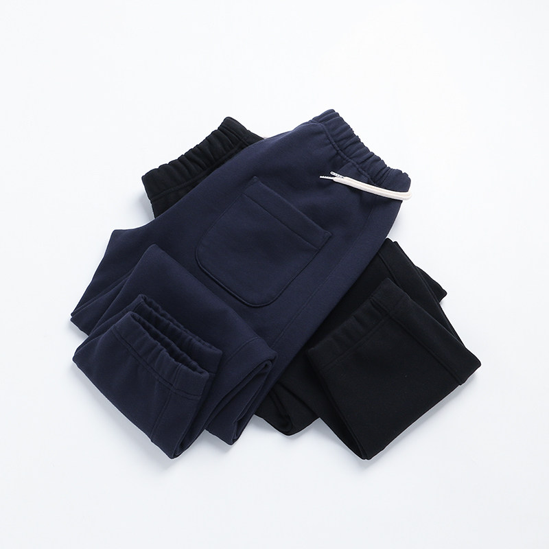 墨蓝色重磅纯棉毛圈布宽松收脚卫裤男休闲百搭运动束脚收口长裤秋
