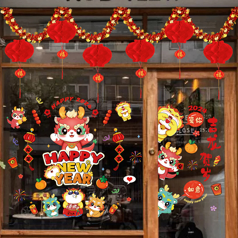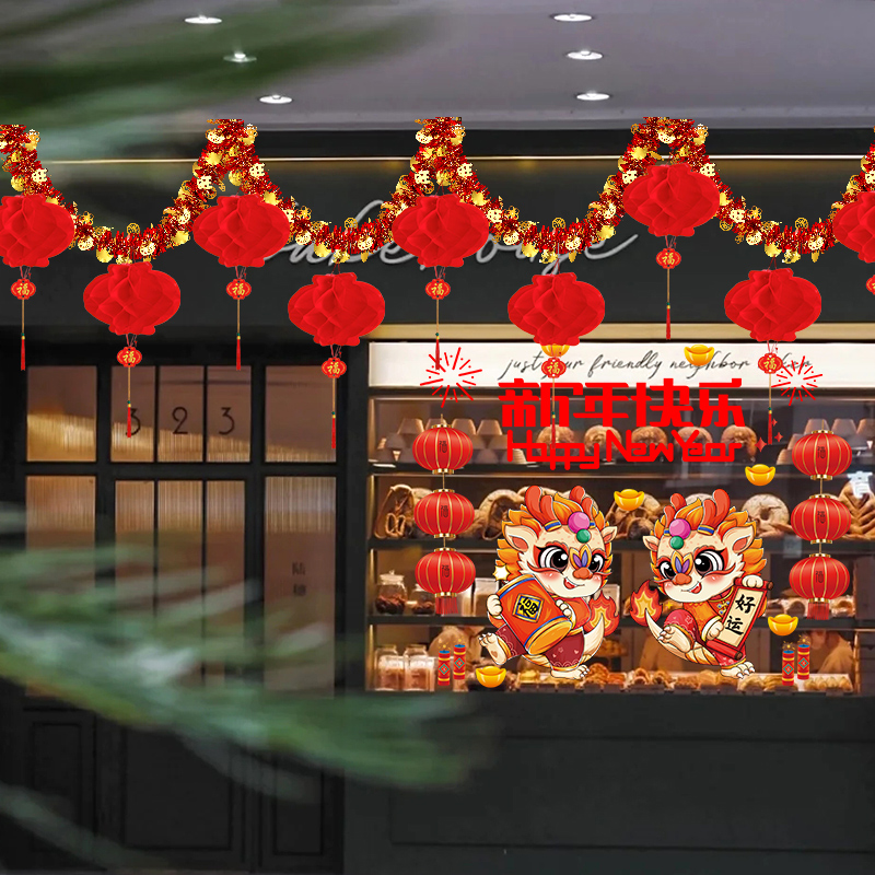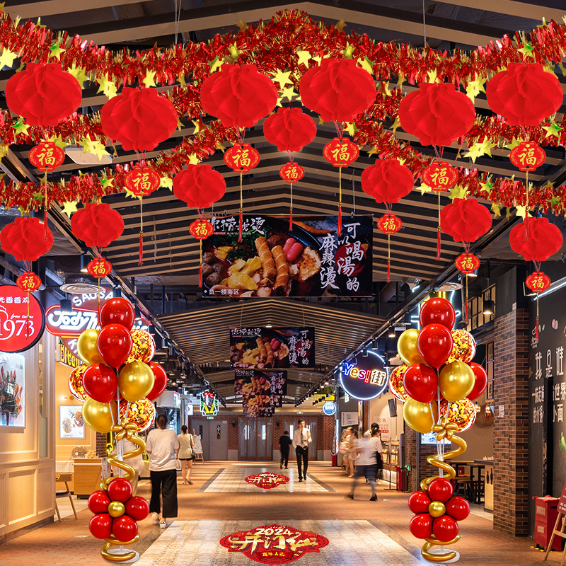 门店新年装饰品2025过年氛围场景布置春节超市店室内拉花灯笼挂饰
