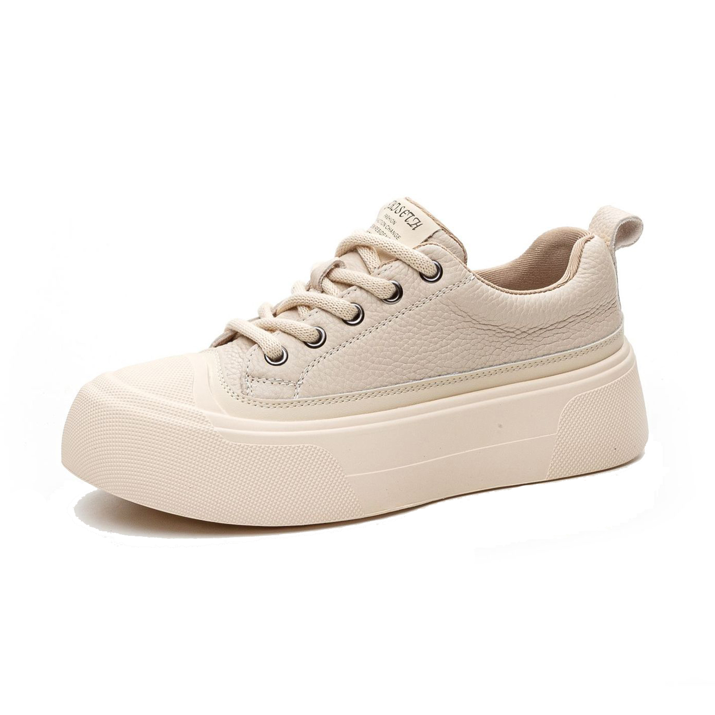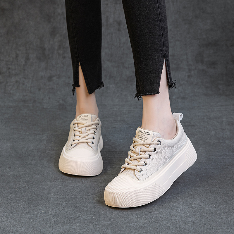 纯皮单鞋女2025秋季新款真皮厚底小白鞋休闲四季鞋百搭系带饼干鞋