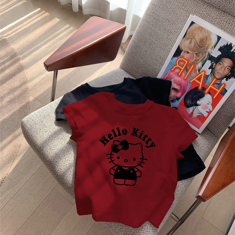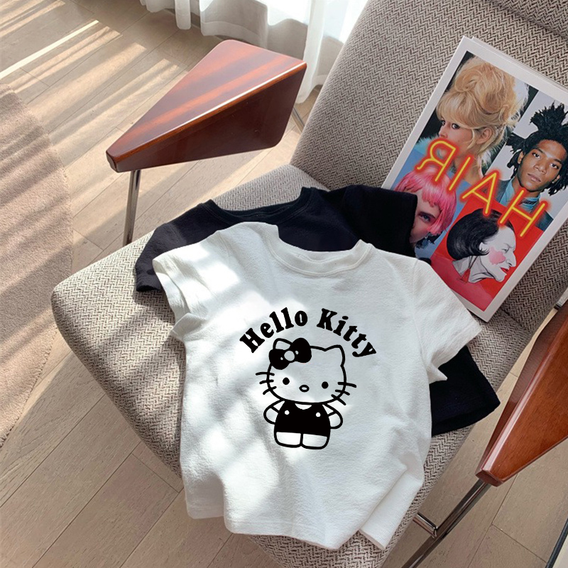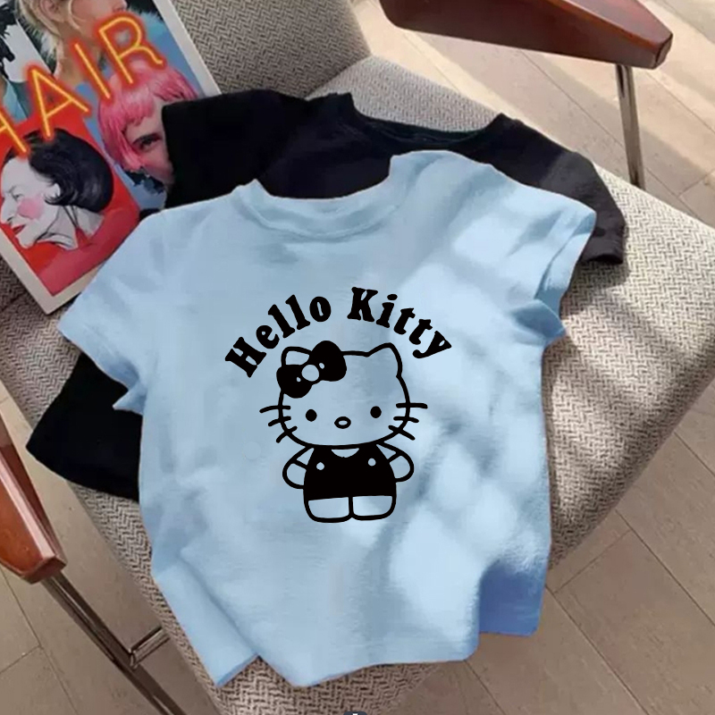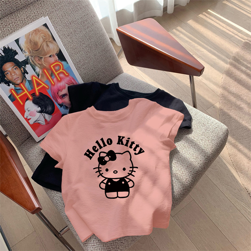 女大童纯棉短袖T恤夏装2025新款儿童夏季宽松哈喽kt正肩夏款上衣