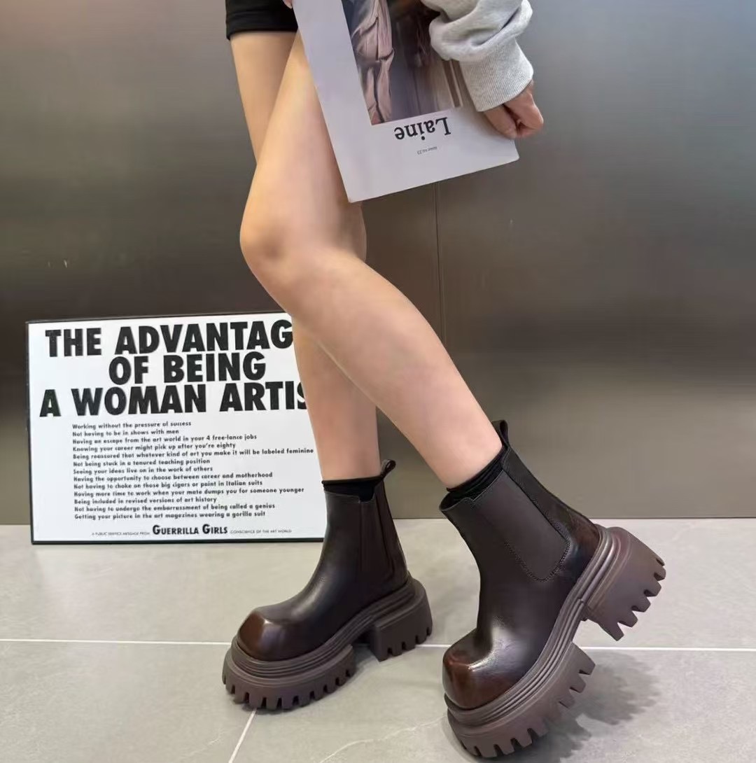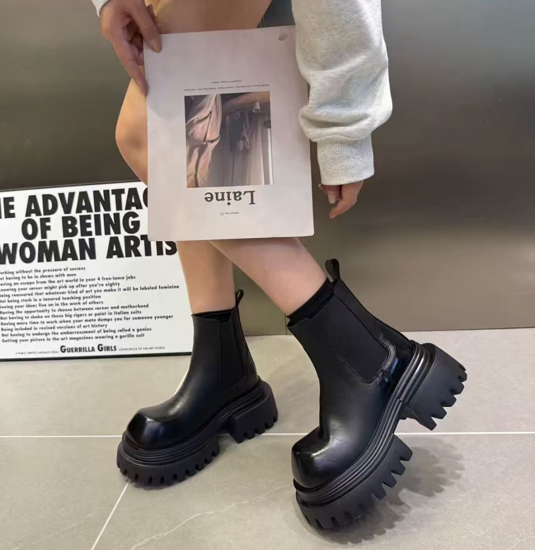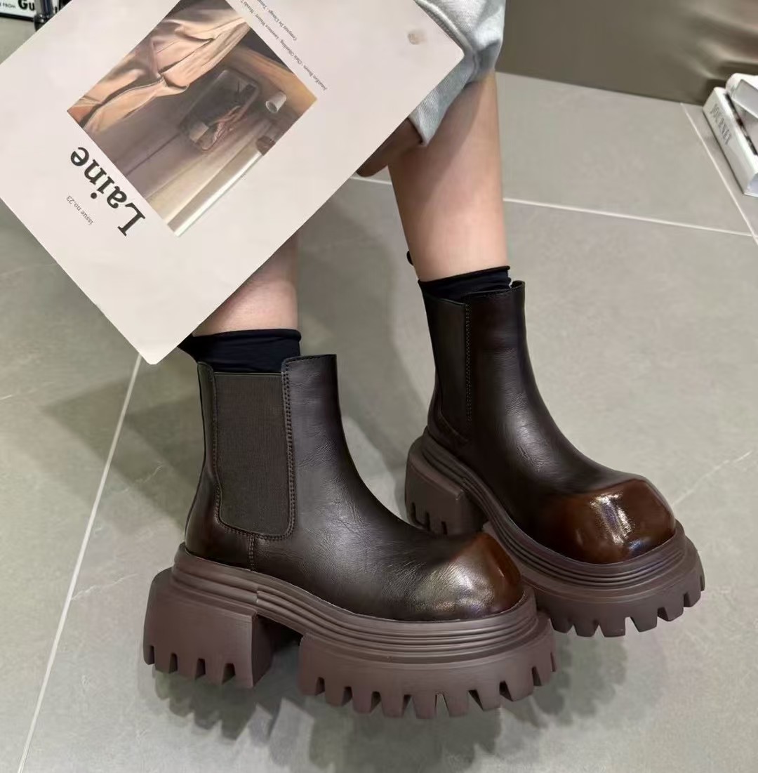 切尔西靴女2025冬季新款百搭短靴加绒厚底粗跟靴子女款马丁靴冬款