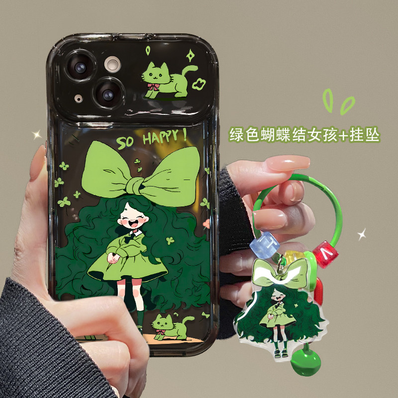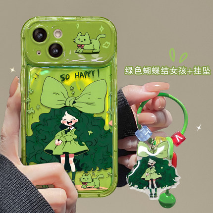 适用苹果15手机壳16新女款iPhone14promax/13硅胶11/12mini蝴蝶结女孩xr/xs翻盖镜子8/7plus透绿6s防摔保护套