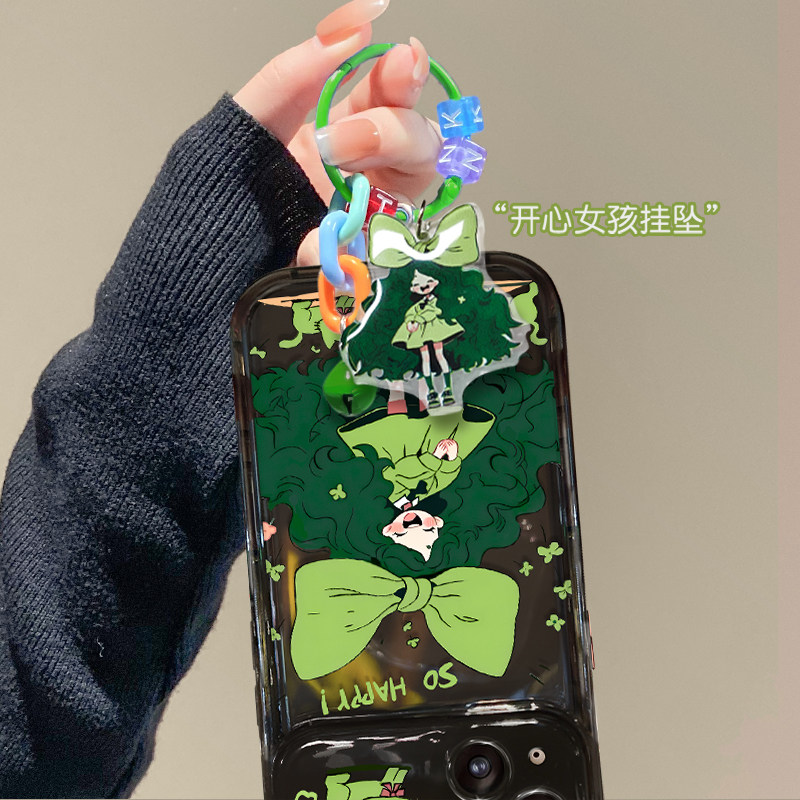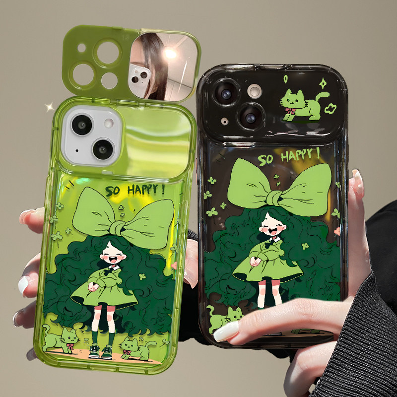 蝴蝶结女孩绿色翻盖镜子手机壳
