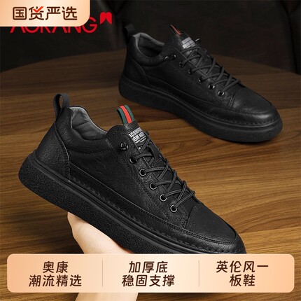 奥康英伦风男鞋2025新款秋季透气休闲男士厚底增高运动一脚蹬板鞋
