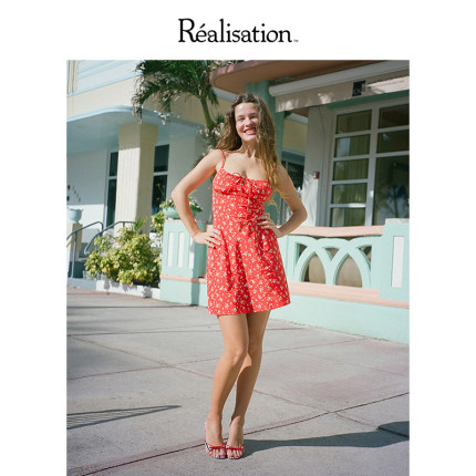 RealisationPar 连衣裙红色碎花真丝吊带A字短裙25年新 The Inez