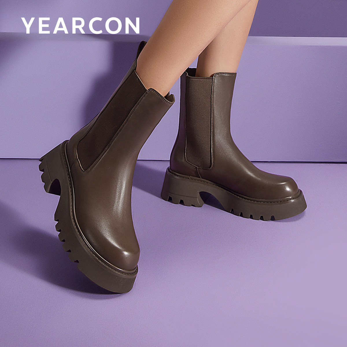 意尔康复古英伦切尔西靴